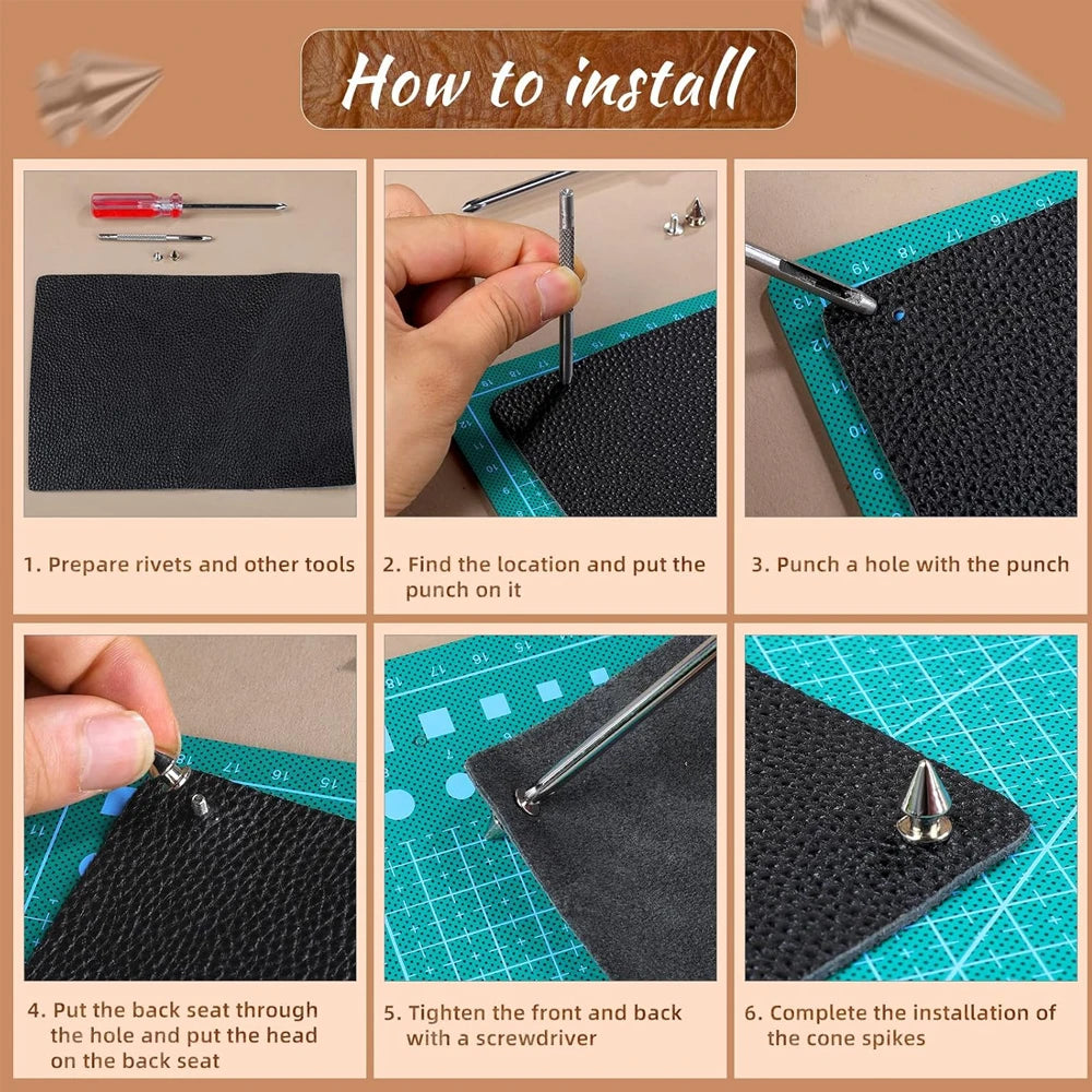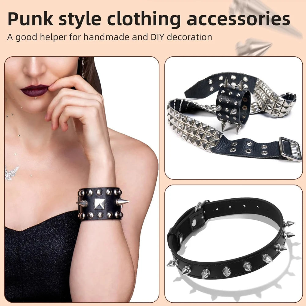 Zxiixz 180Pcs Multiple Sizes Silver Cone Spikes Studs Rivets